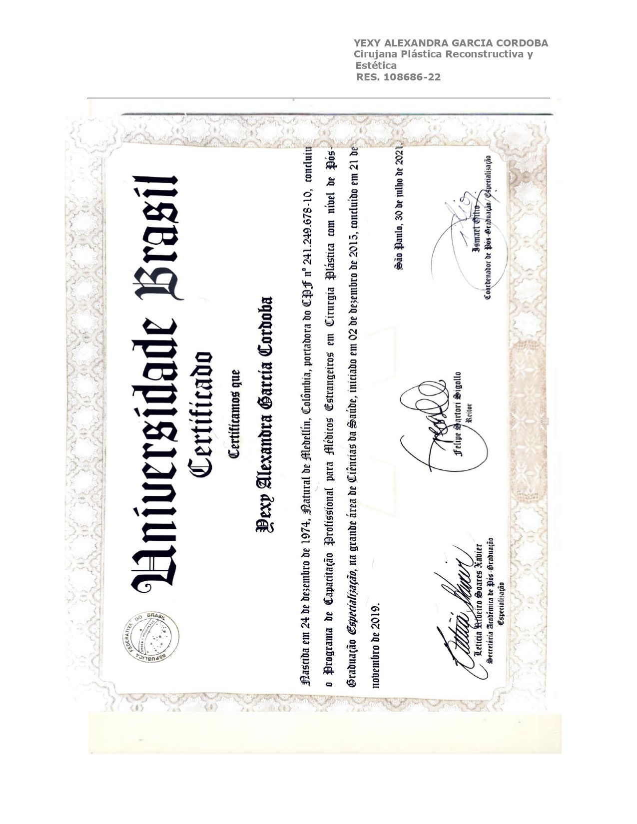 Realicé una maestría en lipoescultura en la International Academy of Cosmetic Surgery y en la Escuela Internacional de Lipoescultura del Dr. Giorgio Fischer, fortaleciendo mi experiencia en procedimientos corporales con técnicas avanzadas y resultados naturales.